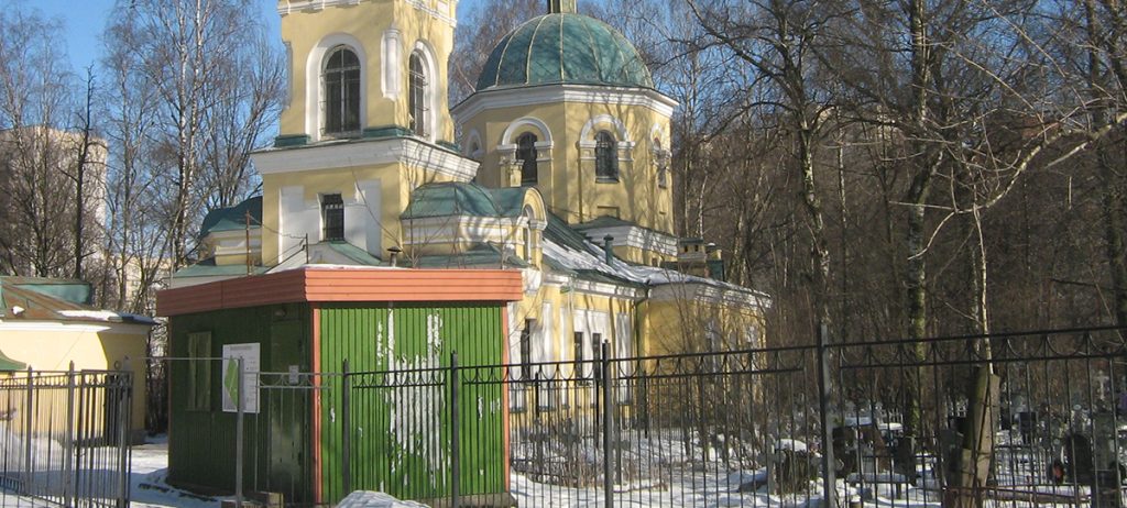 с 58-го километра внутреннего кольца КАД съехать на улицу «Рабфаковская», проехать по пр-ту Обуховской Обороны. Продолжать движение по улице Караваевской 770 метров и свернуть налево к территории кладбища