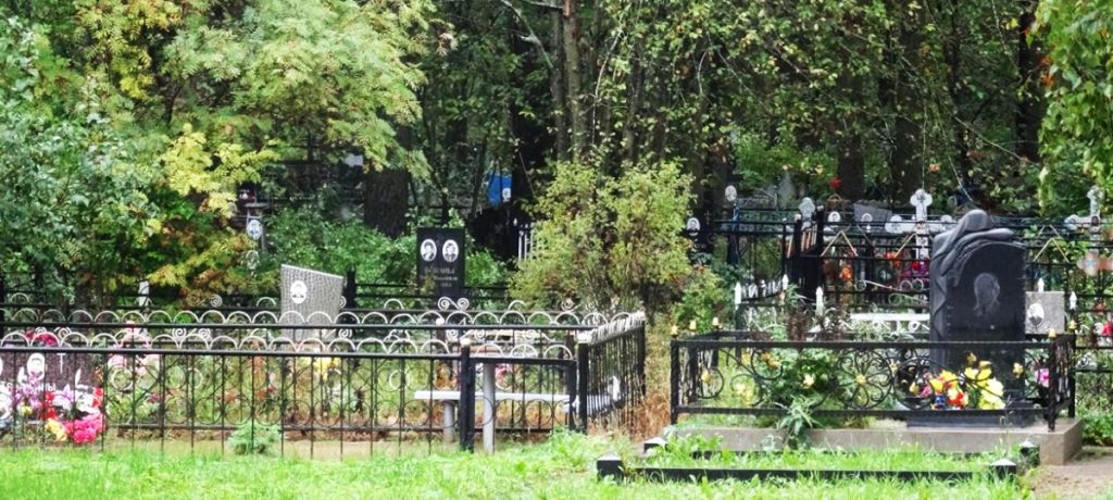 с 52-го километра внешнего кольца КАД свернуть на Мурманское шоссе, проехать 2,22 километра и повернуть вправо. Продолжать движение 400 метров к территории кладбища.