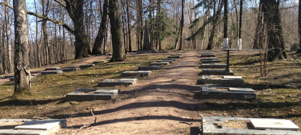 со 116-го километра внутреннего кольца КАД съезд на Краснофлотское шоссе. Через 1 км вправо, к некрополю.