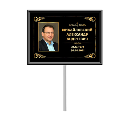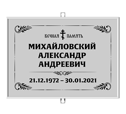 Ритуальная табличка содержит минимальную информацию о покойном – его ФИО и даты жизни. В индивидуальном порядке на ней гравируют фотографию усопшего, религиозную символику, напутственные слова или эпитафию.