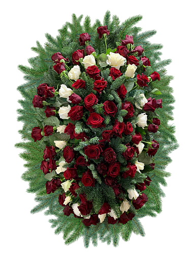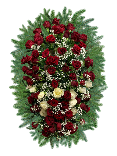 Позднее, с приходом христианства, сакральный смысл венка из еловых веток слился с терновым венцом Иисуса Христа. Сама цветочная композиция также изменила свой внешний вид. Вместо окружности, она скорее имеет форму эллипса и практически полностью накрывает собою гроб.